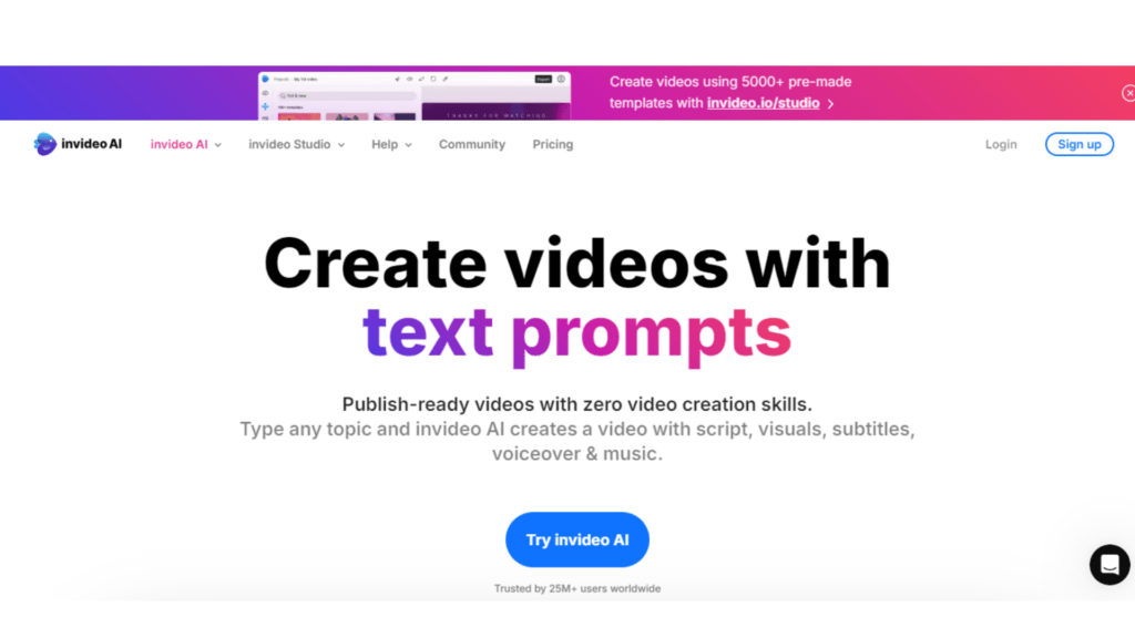 InVideo is a go-to tool for marketers and creators who want creative control over their text-to-video projects. With a vast library of templates and stock assets, InVideo simplifies the process of turning scripts into high-quality videos that fit your branding needs.